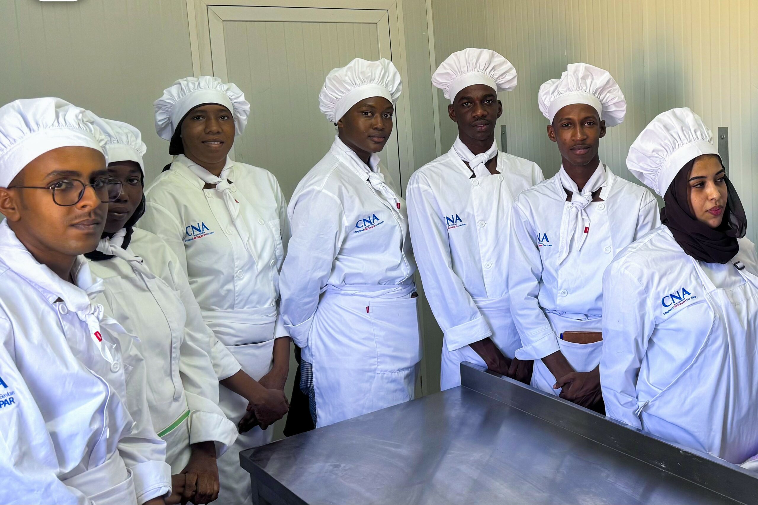 CNA Mauritania a offert des uniformes professionnels adaptés aux besoins des différents métiers enseignés à l’EHT, tels que la cuisine, le service en salle, le service d’étage, la pâtisserie et la réception.